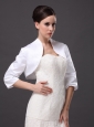 Custom Made White High-neck Jacket With 1/2 Sleeves For Wedding