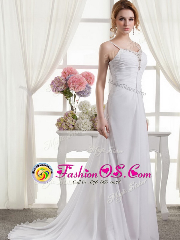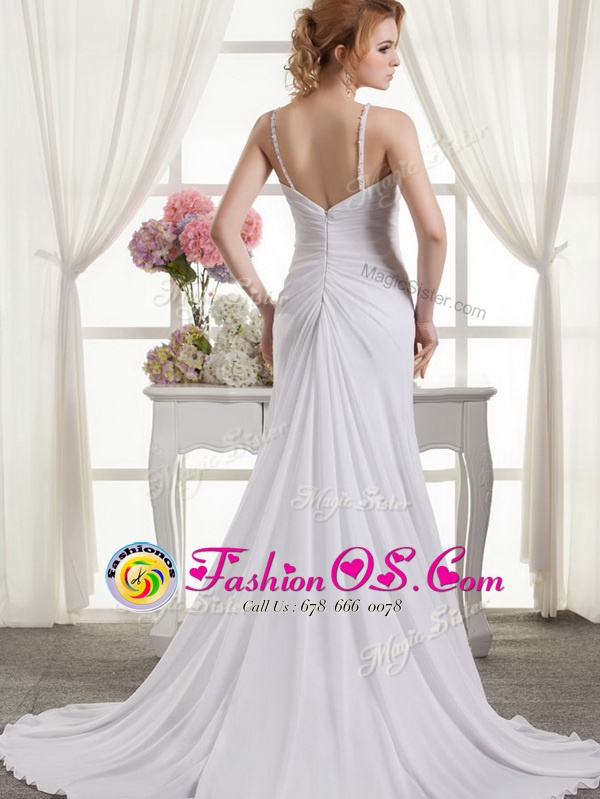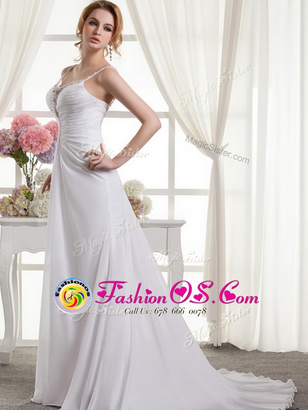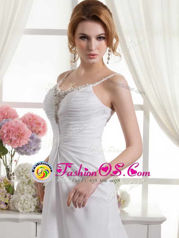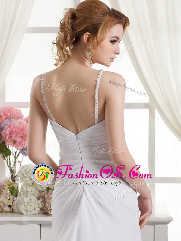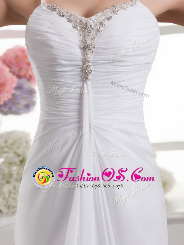 Home >  Wedding Dresses >  Fashionable Wedding Dresses > Custom Made White Sleeveless Beading and Ruching Zipper Bridal Gown