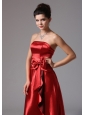Home >  Bridesmaid Dresses >  Simple Bridesmaid Dresses > Custom Made Wine Red Column Bridesmaid Dress With Bows In New London Connecticut
