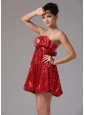 You will be sure to shine under the spotlight in this sequince prom dress! This mini skirt showcases your sexy curves. The numerous red petals consists of bust giving a illusion of fuller bust. The flower in full blosom sets off this glittering dress. A hidden zipper makes for easy off and on and secures the dress in place. People will gasp and jaws will drop when you walk through the doors!