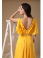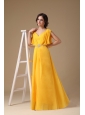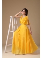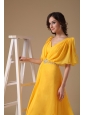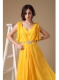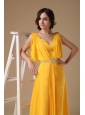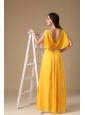 Custom Made Yellow Empire Evening Dress V-neck Chiffon Beading Floor-length