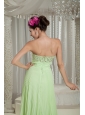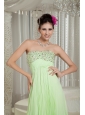 Home >  Prom Dresses >  Elegant Prom Dresses > Custom Made Yellow Green Prom Dress Empire Strapless Beading Brush Train Chiffon
