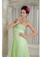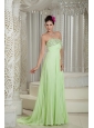 Custom  Made Yellow Green Prom Dress Empire Strapless Beading Brush Train Chiffon