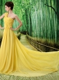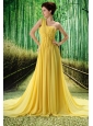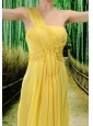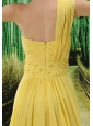 Custom Made Yellow One Shoulder Ruched Bodice Prom Dress Beaded Decorate Bust In Formal Evening