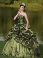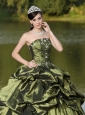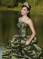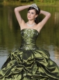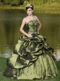 Home >  Quinceanera Dresses >  Perfect Quinceanera Dresses > Custom Size Strapless Quinceanera Dress Beaded Decorate With Olive Green