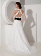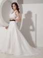 Home >  Wedding Dresses >  Latest Wedding Dresses > Customize A-line Halter Court Train Satin and Lace Appliques Wedding Dress