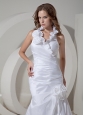 Customize A-line Halter Wedding Dress Taffeta Hand Made Flowers Court Train