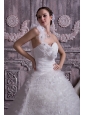 Have you ever dreamt what you will be like in your wedding day? Of course, you are the most beautiful bride when you are in this gorgeous wedding dress.The white one-shoulder floor length tulle gown is your perfect choice in your most important day in your life. Fitting bodice design with trim pleats decoration makes the gown so beautiful and sexy. Besides, the the floor length design with heavily ruffles adds its lelegance and decency, while the floral strap makes the ball gown much more cute and lovely as if you are a princess in a fairy tale. A lace up closure in the back. What is more, the price is reasonable based on the comfortable materials.