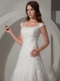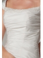 You'll adore the posh style of this strapless wedding dress! It features a straight strapless neckline trimmed by exquisite handmade beads and accented by adorable cap sleeves.Delicate contrasting ruching in separately horizontal,diagonal,vertical pattern on the waist, midriff and the skirt perfectly presents your feminine silhouette.The a-line skirt of this classic gown sweeps effortlessly to the floor.The pleated accents and a dramatic train add its fullness.It's dramatic touches will have heads turning the moment you arrive.