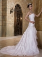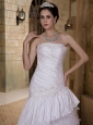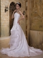 Home >  Wedding Dresses >  Popular Wedding Dresses > Customize A-line Strapless Wedding Dress Court Train Taffeta and Organza Appliques