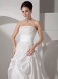 Customize A-line Strapless Wedding Dress Court Train Taffeta Appliques