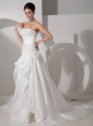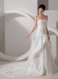 Home >  Wedding Dresses >  Popular Wedding Dresses > Customize A-line Strapless Wedding Dress Court Train Taffeta Appliques