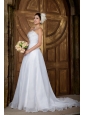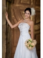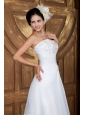 Customize A-line Strapless Wedding Dress Organza Embroidery Court Train