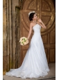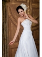 Star in your own fairytale at wedding in this wonderful wedding dress. This dress features a strapless bodice and a-line skirt with court train. The embroidery on the bodice upgrades your tastes and beautifies the dress. You will be his princess in this dress at your wedding. The hidden zipper up back secures the dress in place.