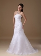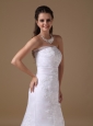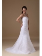 Home >  Wedding Dresses >  Popular Wedding Dresses > Customize A-line Strapless Wedding Dress Taffeta Lace Brush Train