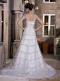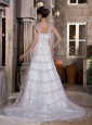 Customize A-line Straps Wedding Dress Court Train Taffeta and Lace Beading