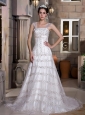 Home >  Wedding Dresses >  Elegant Wedding Dresses > Customize A-line Straps Wedding Dress Court Train Taffeta and Lace Beading