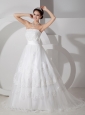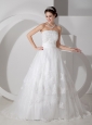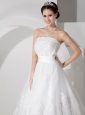 Customize A-line Wedding Dress Strapless Belt Brush Train