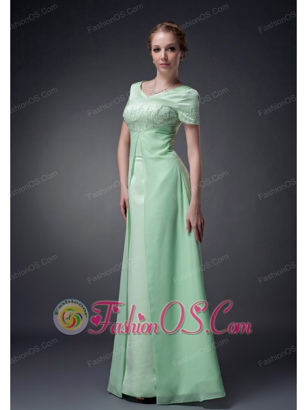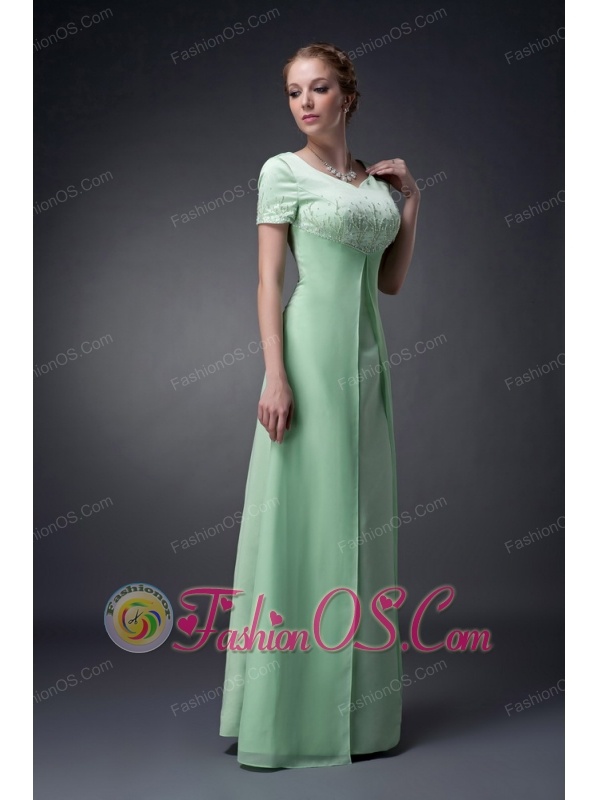 Home >  Special Occasion Dresses >  Mother of the Bride Dresses > Customize Apple Green A-line V-neck Mother Of The Bride Dress Chiffon Beading Floor-length