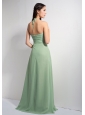 Customize Apple Green Empire Halter Ruch Bridesmaid Dress Brush Train Chiffon