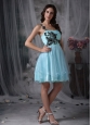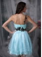 Customize Aqua Blue A-line One Shoulder Short Prom Dress with Black Appliques