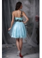 Home >  Prom Dresses >  Short Prom Dresses > Customize Aqua Blue A-line One Shoulder Short Prom Dress with Black Appliques