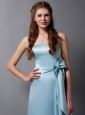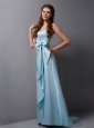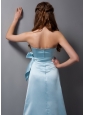 Customize Baby Blue Column Strapless Bridesmaid Dress Satin Bow Brush Train