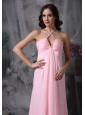 Customize Baby Pink Evening Dress Empire Halter  Chiffon Beading Floor-length