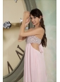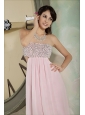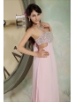 Customize Baby Pink Prom Dress Empire Strapless Chiffon Beading Floor-length