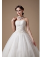 Customize Ball Gown Wedding Dress Strapless Satin And Tulle Appliques Floor-length