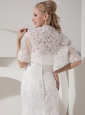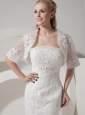 Instill your special day with your signature esprit when you select this unique bridal style.The strapless bodice is fully coated by exquisite lacy appliques which run down the skirt and an empire waist is highlighted with shimmering crystals. Lace overlay covers the gown for a look that’s rich in texture. The linear botton closure and a dramatic train further elongate your slim figure.A fit and flared shape for a delicate look will make your guests remember the occasion.