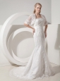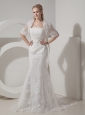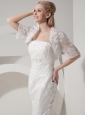 Home >  Wedding Dresses >  Latest Wedding Dresses > Customize Beautiful Mermaid Strapless Wedding Dress Lace and Taffeta Beading Chapel Train
