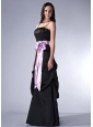 Customize Black Cloumn Spaghetti Straps Bridesmaid Dress Satin Sash Floor-length