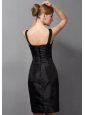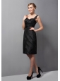 Customize Black Column Mother Of The Bride Dress Straps Ruch Mini-length Taffeta