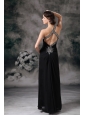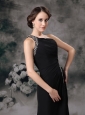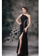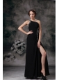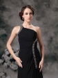 Customize Black Empire One Shoulder Evening Dress Chiffon Beading Floor-length