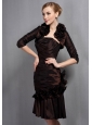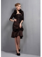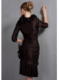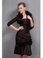 Customize Brown Column Mother Of The Bride Dress Strapless Hand Made Flowers Knee-length Taffeta