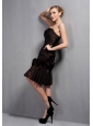 Home >  Special Occasion Dresses >  Mother of the Bride Dresses > Customize Brown Column Mother Of The Bride Dress Strapless Hand Made Flowers Knee-length Taffeta