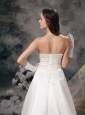 Elegant and Charming. This white and champagne wedding dress features strapless with sweetheart neckline, it was accented with beading in the bodice and with embellishments at the side waist. This angelic wedding dress has a grace lace up back closure and the skirt is complete with a brush train.
