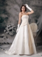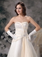 Customize Champagne A-line Sweetheart Wedding Dress Satin Beading Brush Train