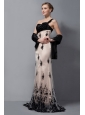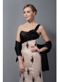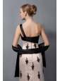 Home >  Prom Dresses >  Best Prom Dresses > Customize Champagne and Black Column One Shoulder Brush Train Tulle Lace and Hand Made Flower Prom Dress