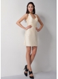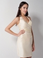 Customize Champagne Column Halter Bridesmaid Dress Mini-length Taffeta