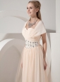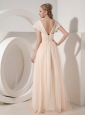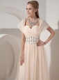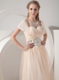 You will be the belle when you wear this charming gown. It features a sleeves with sweetheart neckline on the crossed and ruched bust, the waist was decorated with handwork beading, which adds more charming to this dress. The outlayer tulled skirt falls in soft, clean lines to your feet. So elegant and fabulous, the back of the dress has a hidden zip closure that secures the dress in place and makes for easy off and on.
