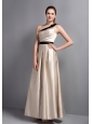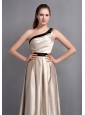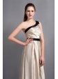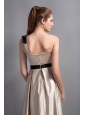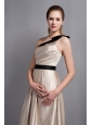 Customize Champagne One Shoulder Bridesmaid Dress with Black Belt