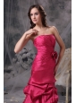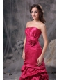 Customize Coral Red A-line Strapless Prom Dress Taffeta Beading Floor-length