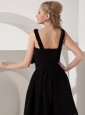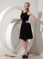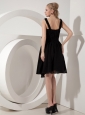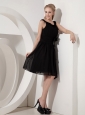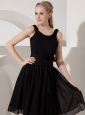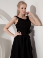 Customize Empire Scoop Little Black Dress Chiffon Hand Made Flower Knee-length