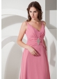 Flowy dramatic long dress features a v-neckline and a ruched wide band with stunning rhinestones on the mid of the band. A hidden zipper up back is designed for the dress to make the dress secure in place and easy off and on. You will be a vision in this long chiffon gown. If you want yourself bright in the party,the pink dress is best choice.