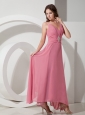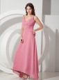 Customize Empire V-neck  Beading Prom Dress Ankle-length Chiffon