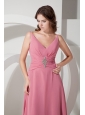 Customize Empire V-neck Beading Prom Dress Ankle-length Chiffon