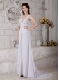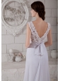 Customize Empire V-neck Lace Wedding Dress Brush Train Chiffon