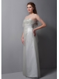 Customize Gray A-line Strapless Beading Bridesmaid Dress Floor-length Tulle and Taffeta